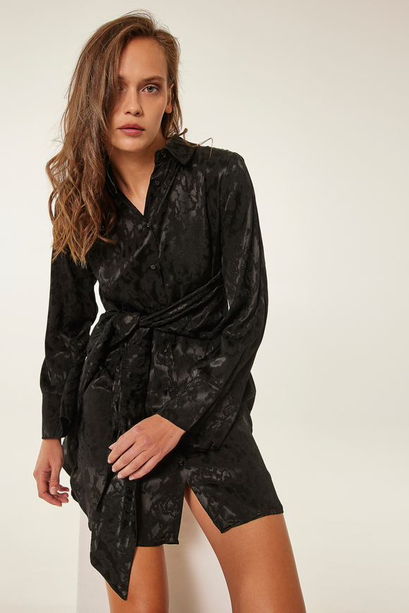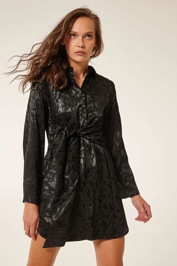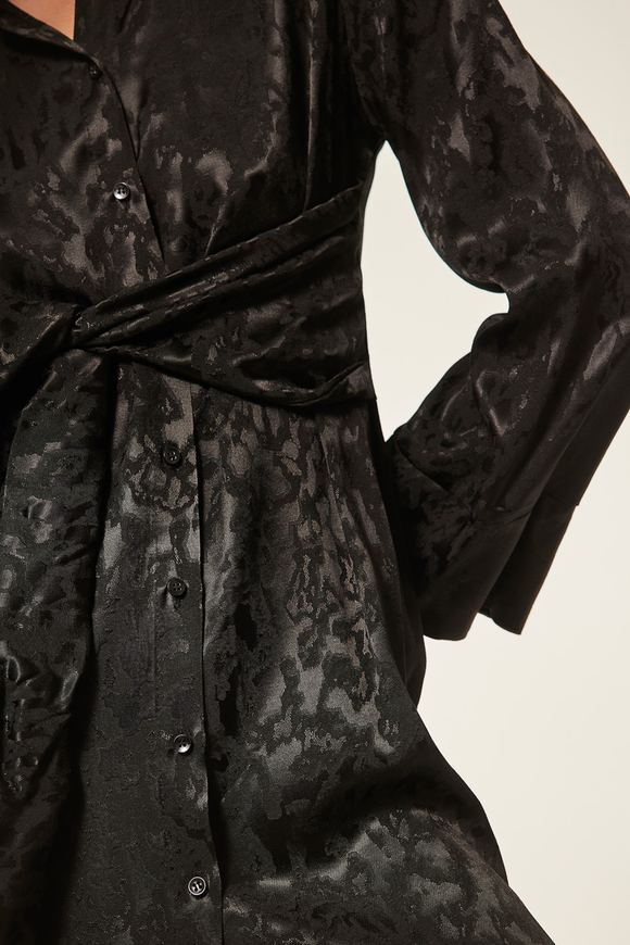 Φόρεμα με δέσιμο σατινέ λεοπάρ όψη