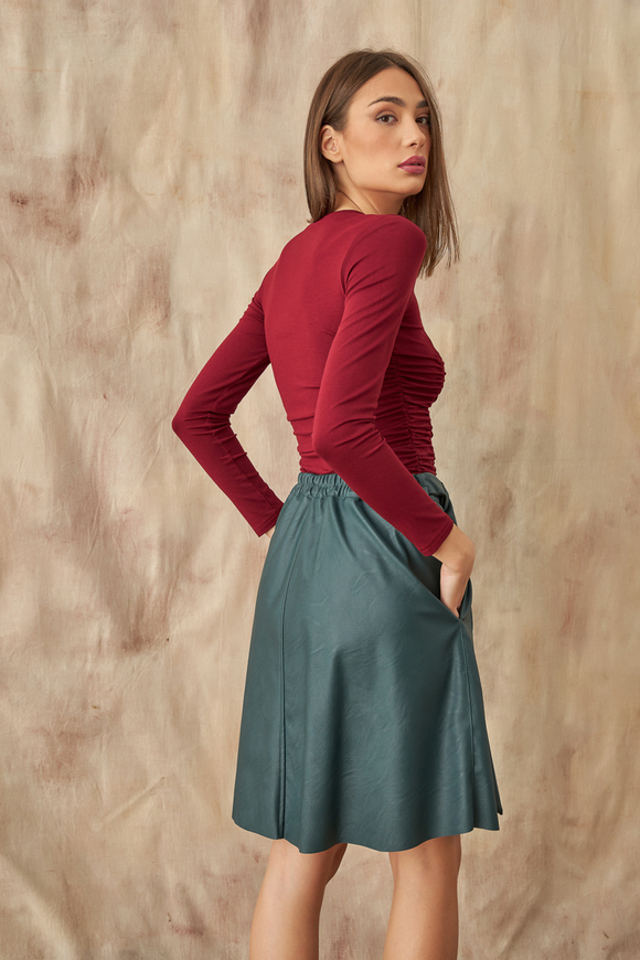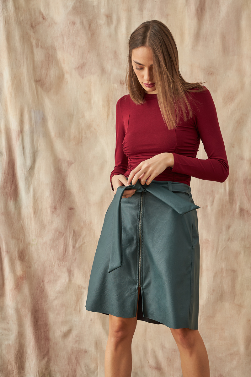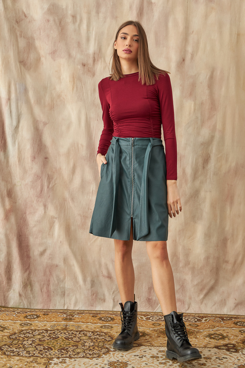 Φούστα δερματίνη με φερμουάρ και ζώνη