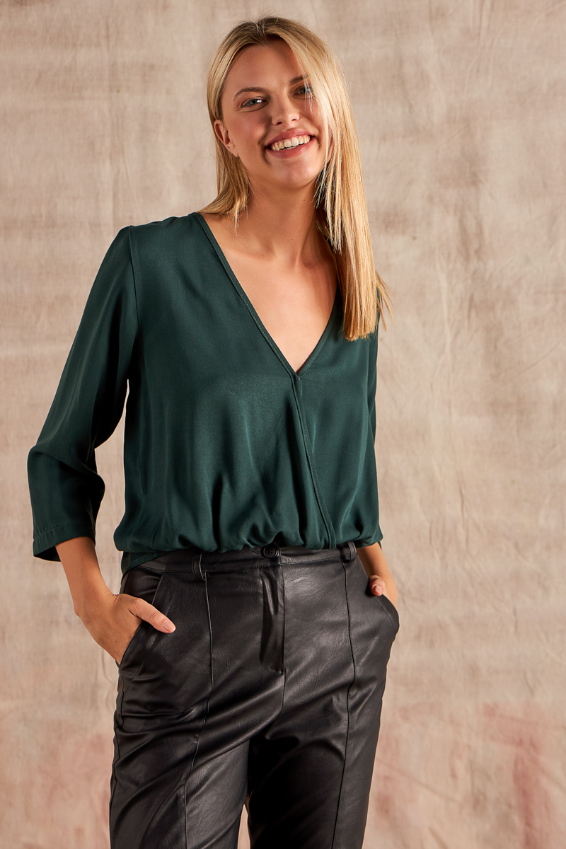 Μπλούζα κρουαζέ με λάστιχο-Κυπαρισσί