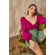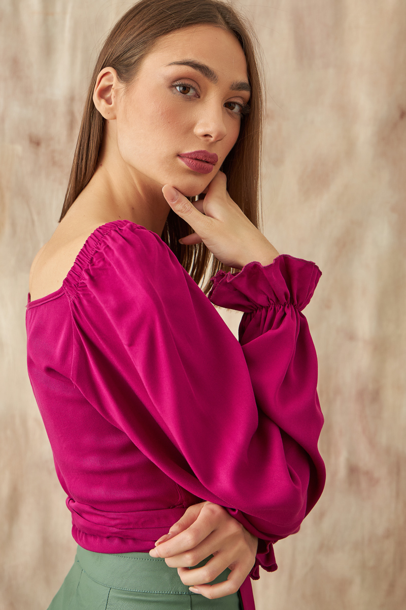 Μπλούζα κρουαζέ με σούρα και λάστιχο στα μανίκια-Magenta