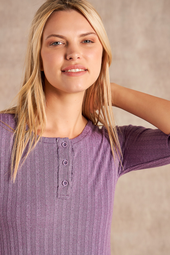 Μπλούζα πλεκτή με κουμπάκια εμπρός-Μωβ