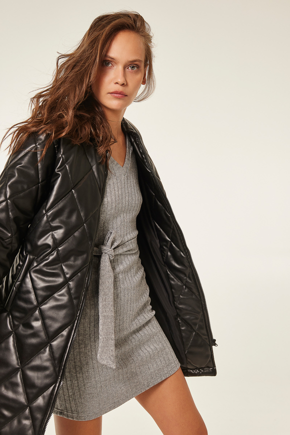 Μπουφάν δερματίνη καπιτονέ μακρύ