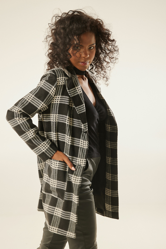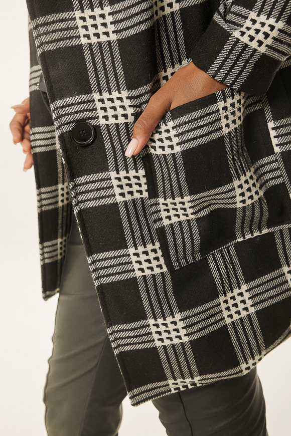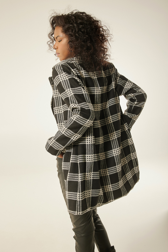 Oversize σακάκι "τύπου" παλτό με πέτο γιακά-Καρό