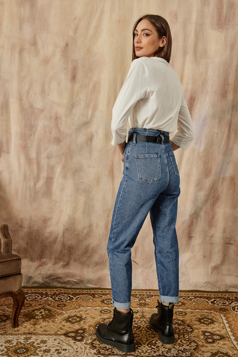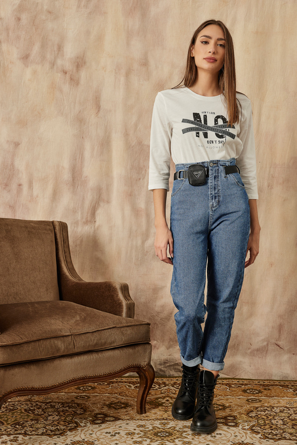 Παντελόνι τζιν ίσιο ψηλόμεσο με τσαντάκι