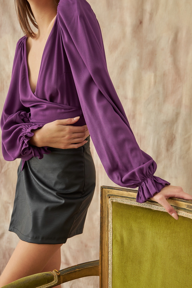 Σόρτς ψηλόμεσο δερματίνη με φύλλο